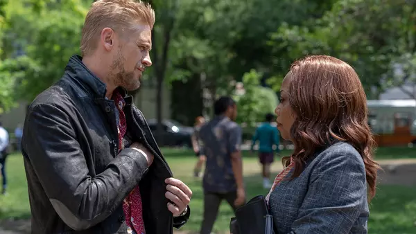 At the Detroit Police Department, Detective Maureen Downey tells Raylan that what he's saying is a lot to take in, that Clement and Sweety are using Judge Guy's book to shake down the people they find inside. "If we can get Mansell with this book physically on his person..." she says and he continues that it'll be something like having him dead to rights. "What time is the parade?" she quips and she asks if the plan is to somehow dredge up a name from the book and then set a trap. He tells her that he already has a name, someone maximimally leveraged to aid their cause. She asks how they even know that Clement will show up and not Sweety, if they even know they'll be interested. Raylan tells her he's not saying there aren't variables. She asks where he's even getting this. She asks if they're talking about a sting and he says the deal is that if they don't do this, they're just waiting for them to make another move, and every moment they wait is one in which someone else could get killed. He says they have a chance to do this the right way. "Jesus Christ, you're sleeping with Mansell's lawyer, aren't you?" realizes Maureen. He just stares and she asks just who he's proposing they do this with?