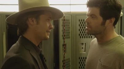 Later, Raylan and Lindsey discuss the recent arrival of the bartender's husband, who is a semi-professional brawler named Randall. Turns out he's the jealous type and was recently released from prison. Just one more reason for Raylan to watch his back. Lindsey also confesses to her own criminal past: she would get close to men to find out what they had that was worth Randall stealing. Randall couldn't stand these men touching his woman, however, and was put away for nearly beating one of the marks to death.